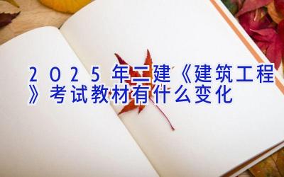 准备冲击2025年二建建筑工程的小伙伴们看过来!先剧透一下,教材变化其实不算天翻地覆,但一些细节调整还是需要注意的,否则一不小心就掉坑里啦!主要体现在内容更新、部分章节调整和例题变化这三个方面。接下来,咱们就详细聊聊,保证让你对2025年的考试教材了如指掌!