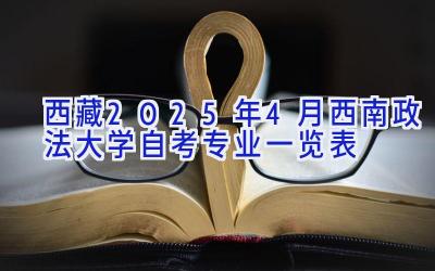 西藏地区2025年4月西南政法大学自考专业的具体信息,目前官方渠道尚未公布。 想要了解具体有哪些专业,需要持续关注西南政法大学自考办的官方网站、招生简章以及西藏地区的相关教育部门发布的通知。以下内容将结合以往自考信息,以及西南政法大学的办学特色,推测可能开设的专业方向,仅供参考,不构成任何报名依据。