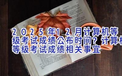好啦,我知道大家都很着急想知道2025年12月计算机等级考试成绩啥时候出,毕竟这可是关系到大家升学、就业的大事!所以,这篇笔记就来详细说说计算机等级考试成绩公布时间以及一些相关事宜,希望能够帮助到大家!