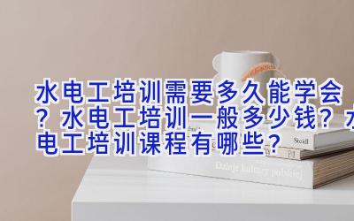 想快速成为一名合格的水电工?这可是个技术活儿! 其实,学会的时间、花费的费用和学习的课程内容,都跟你的基础、学习能力和选择的培训机构息息相关。简单来说,培训时间通常在1-6个月不等,费用从几千到上万不等,课程内容涵盖理论知识和实操技能,还会涉及到安全规范。 下面咱们就来详细聊聊。